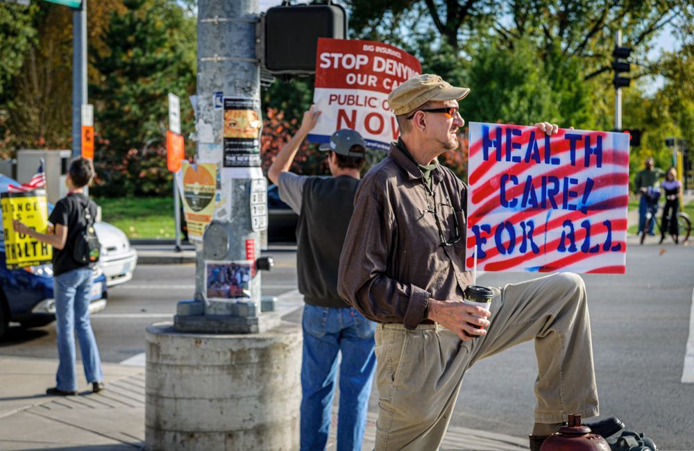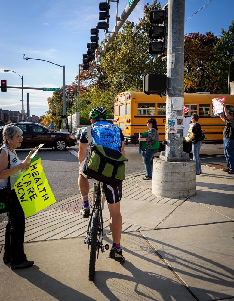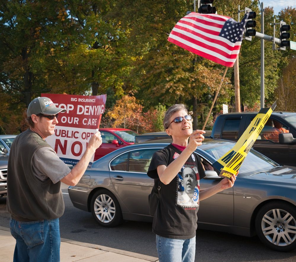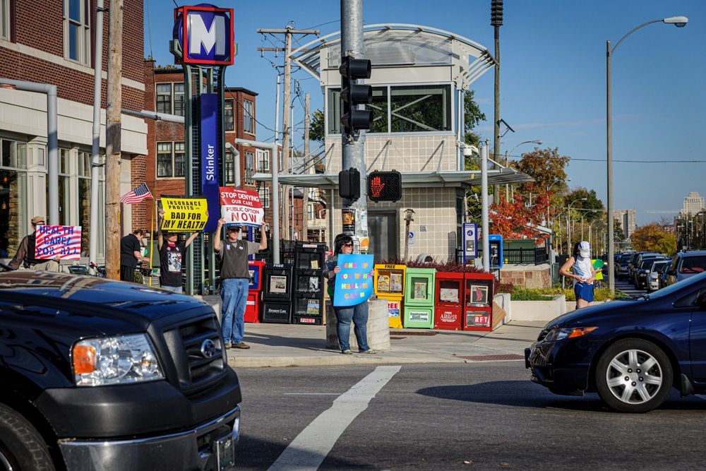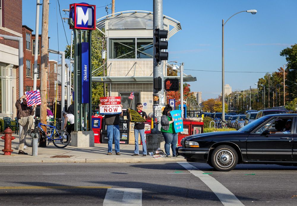This protest, although small, was one of the earliest (Oct. 2009) in the St. Louis area supporting the passage of the Affordable Care Act . Situated at the busy intersection of Skinker Blvd. and the Forest Park Parkway (adjacent to Washington University in St. Louis' campus. Other demonstrations sprang from this one to the eventual passage of the legislation, later called Obamacare.