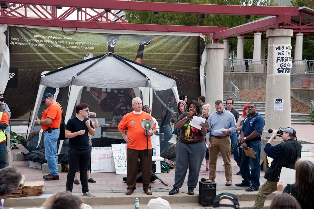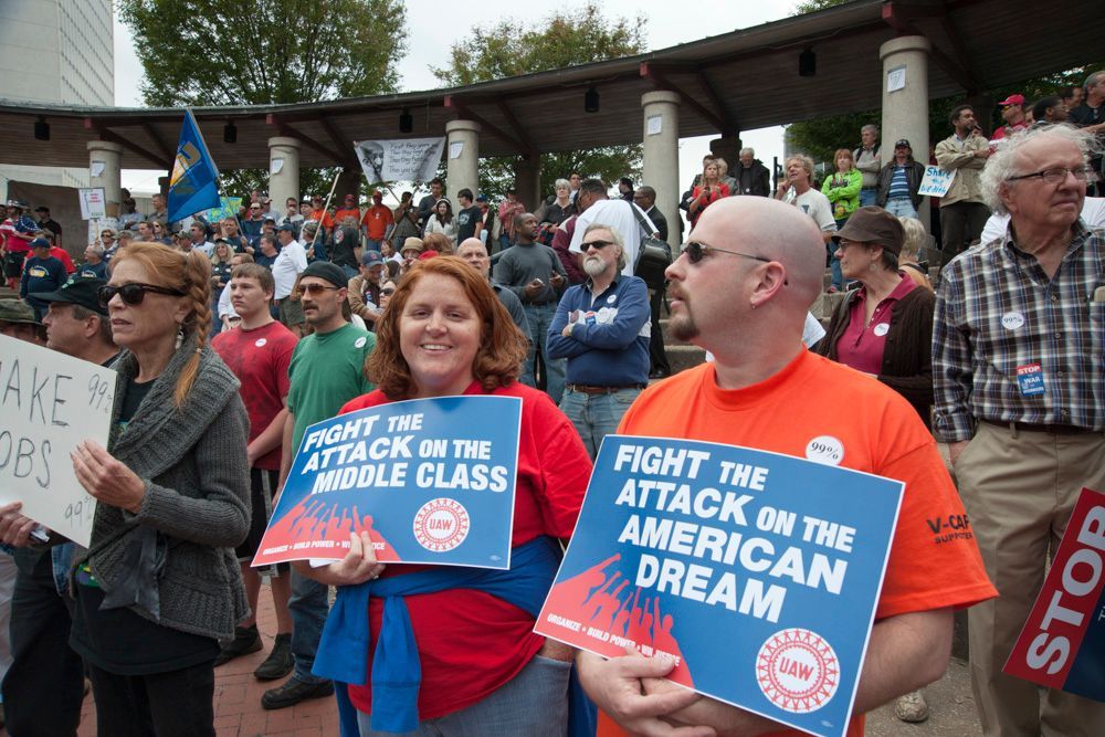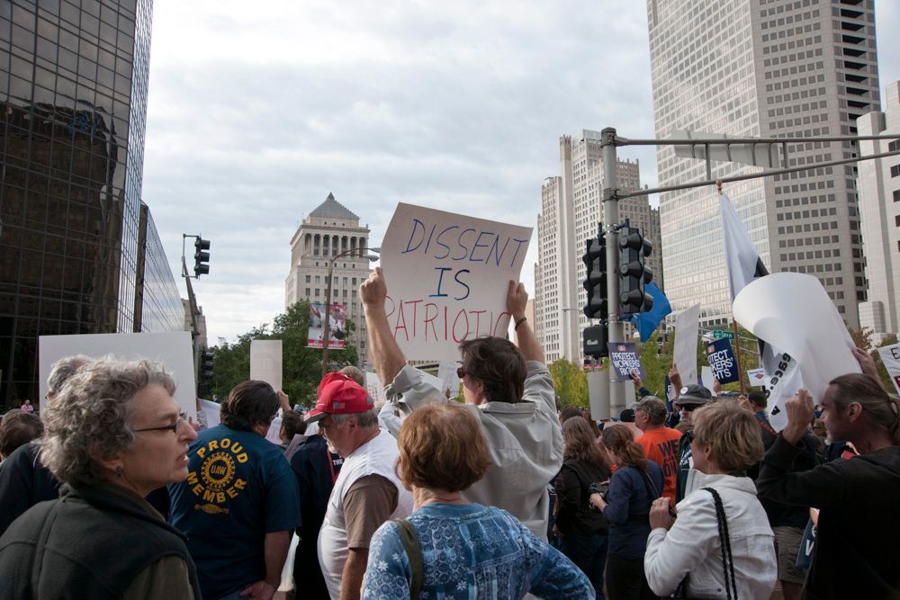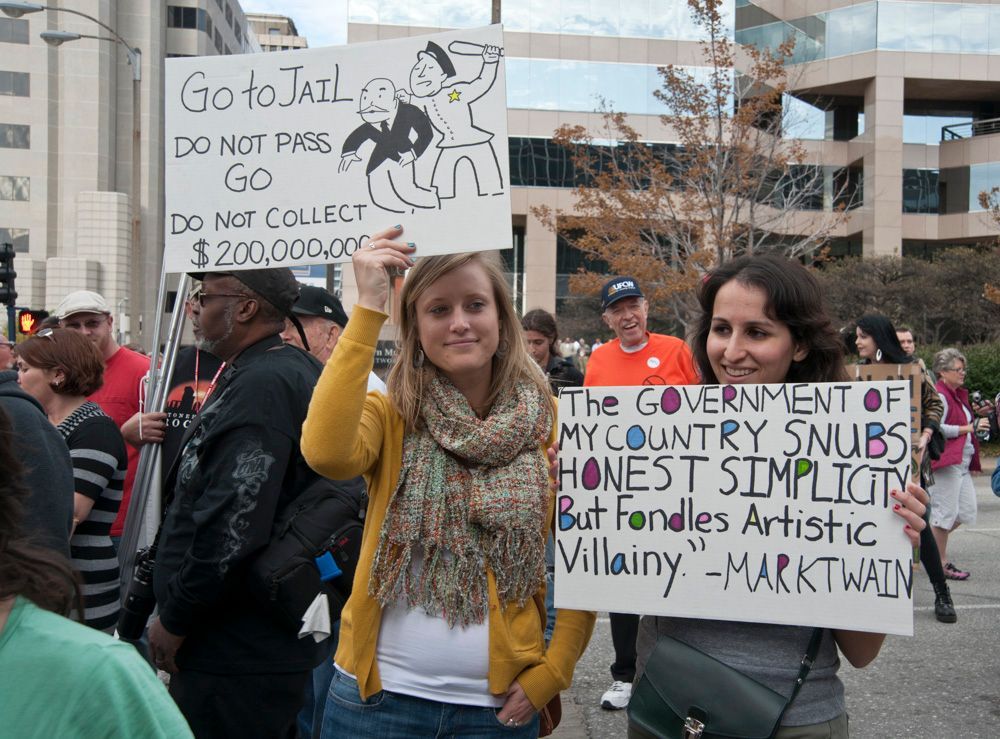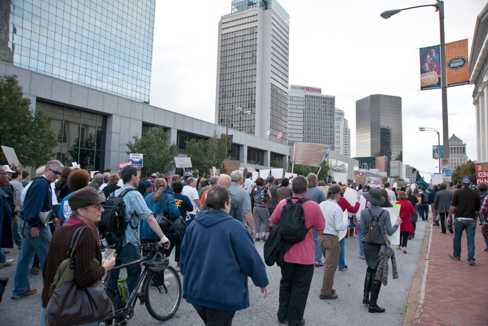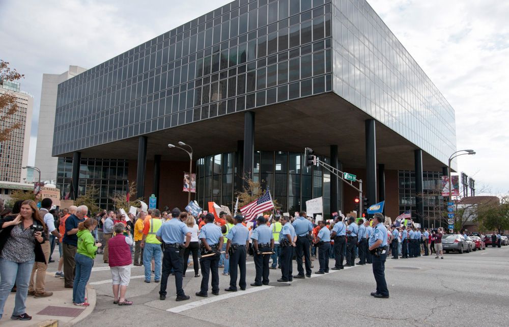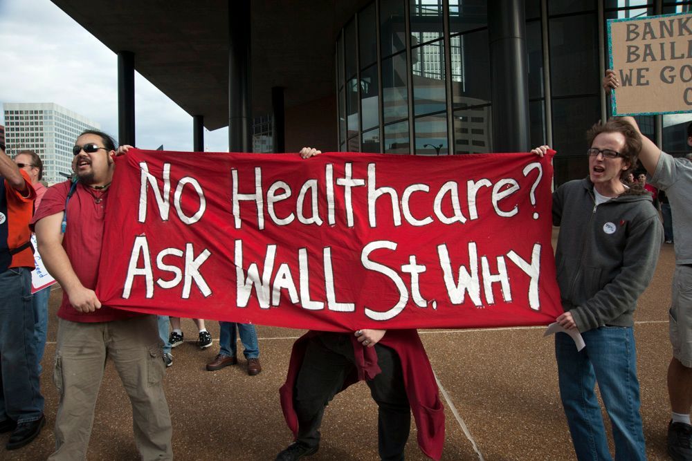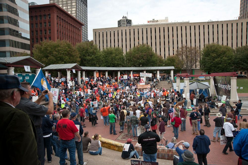 After the 2008 financial crisis, scrutiny toward the 1% wealthiest individuals and corporations became the focus of middle class Americans. Then the protests appeared to demonstrate their dissatisfaction with the income and taxation inequity of capitalism. This protest in downtown St. Louis, Missouri was one of the first to erupt in mid-America.