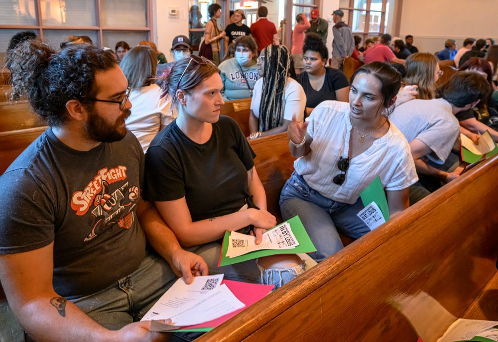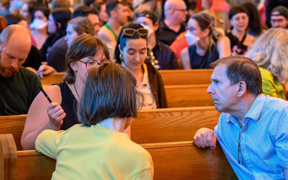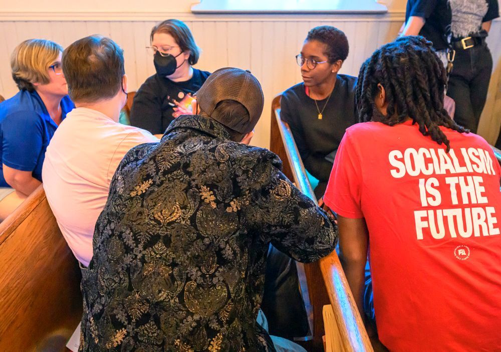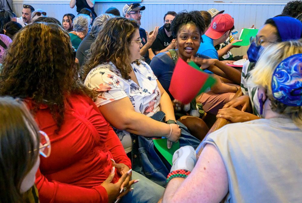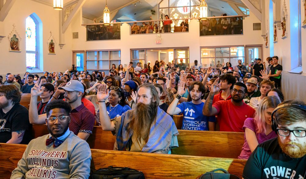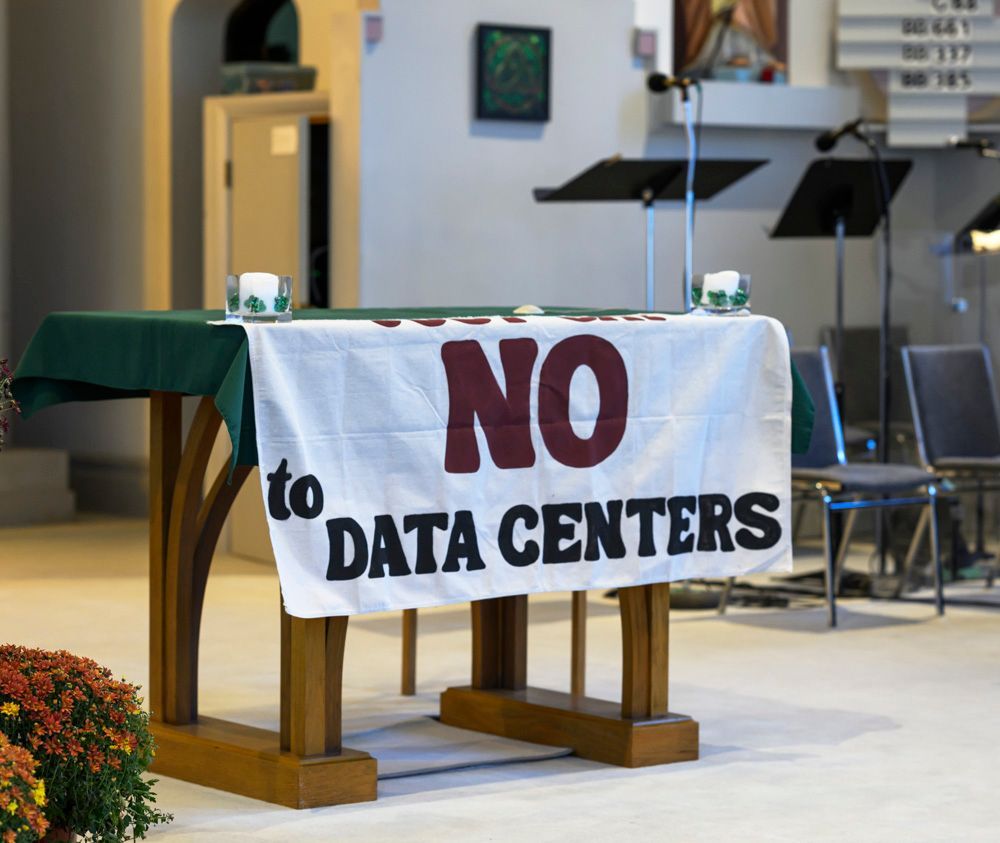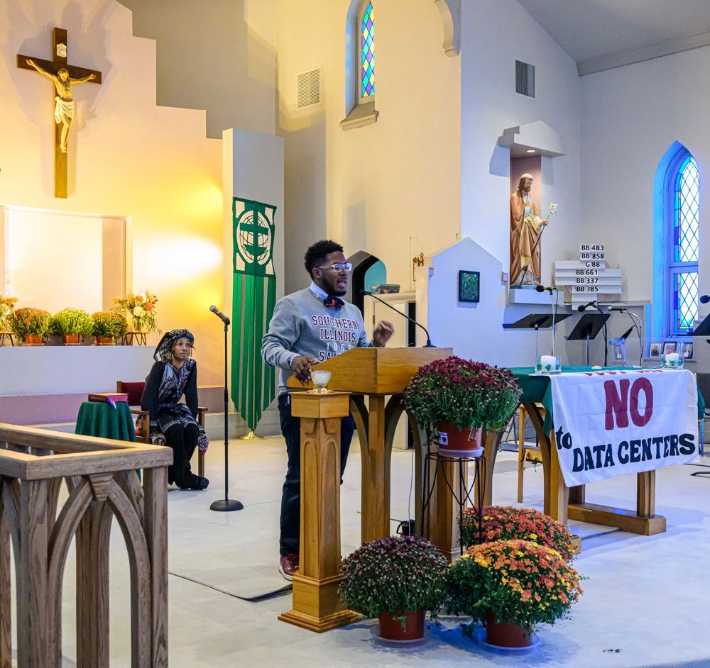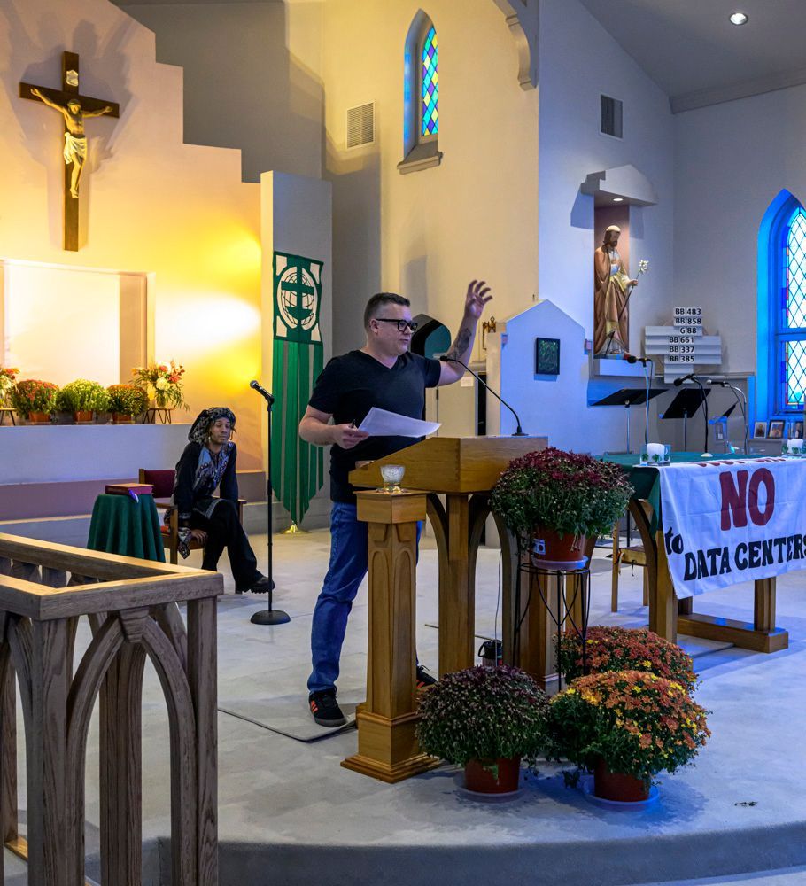 Corporate interests want to build a massive data center in St. Louis against the objection of communities because of concern about higher utility bills, water usage, impact on neighborhoods, tax deferrals that would take revenue away from City schools, and many other environmental issues. A large group gathered at St. Cronin's Catholic Church to strategize and organize.
