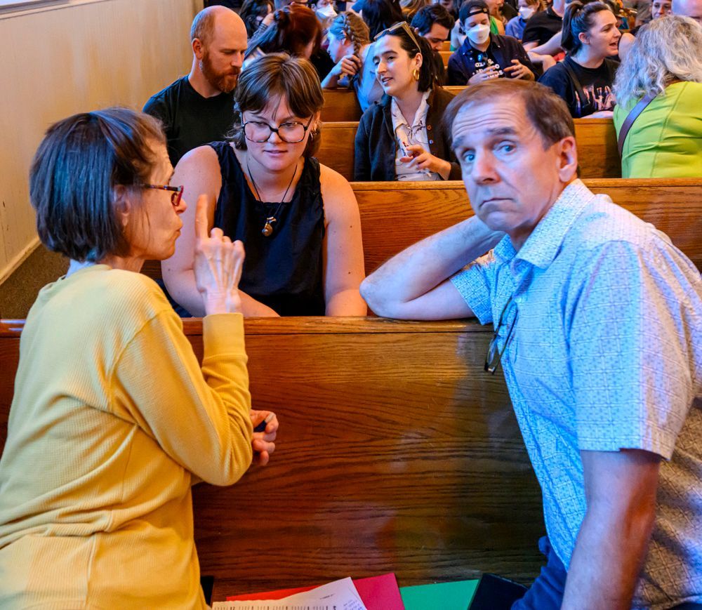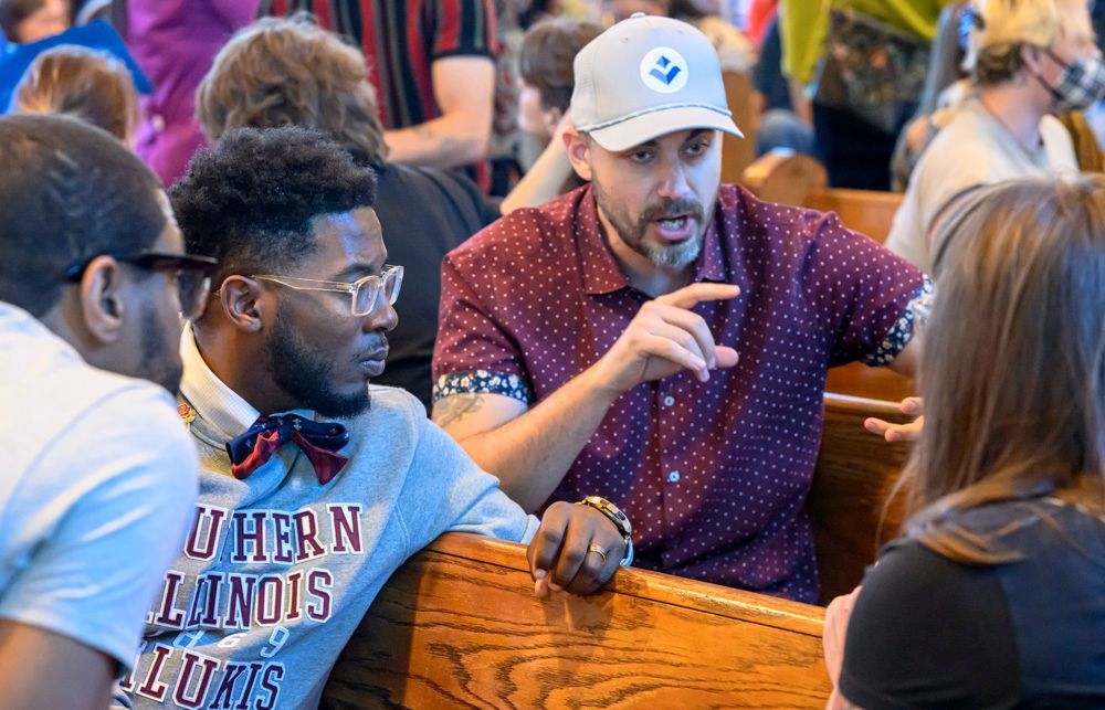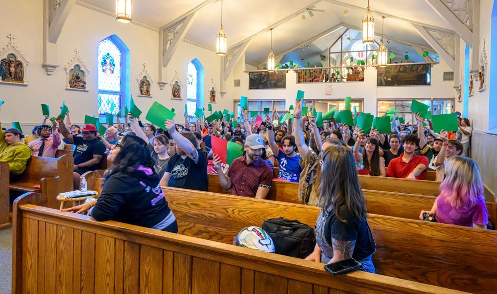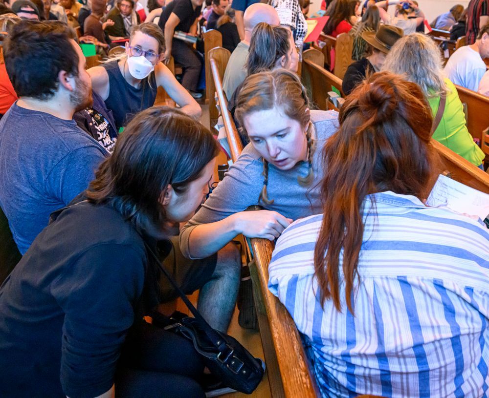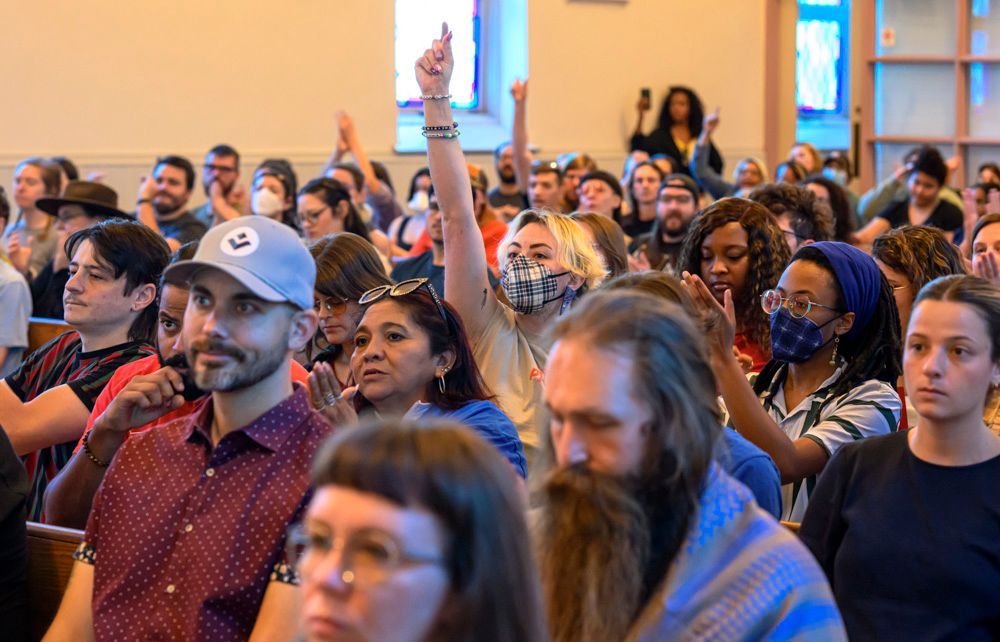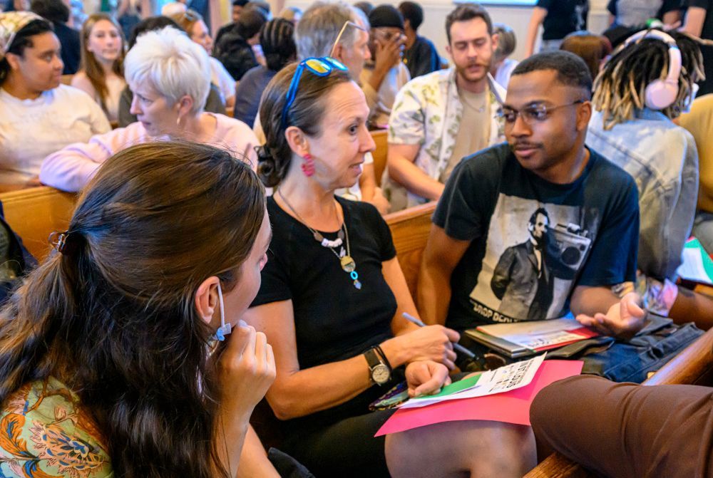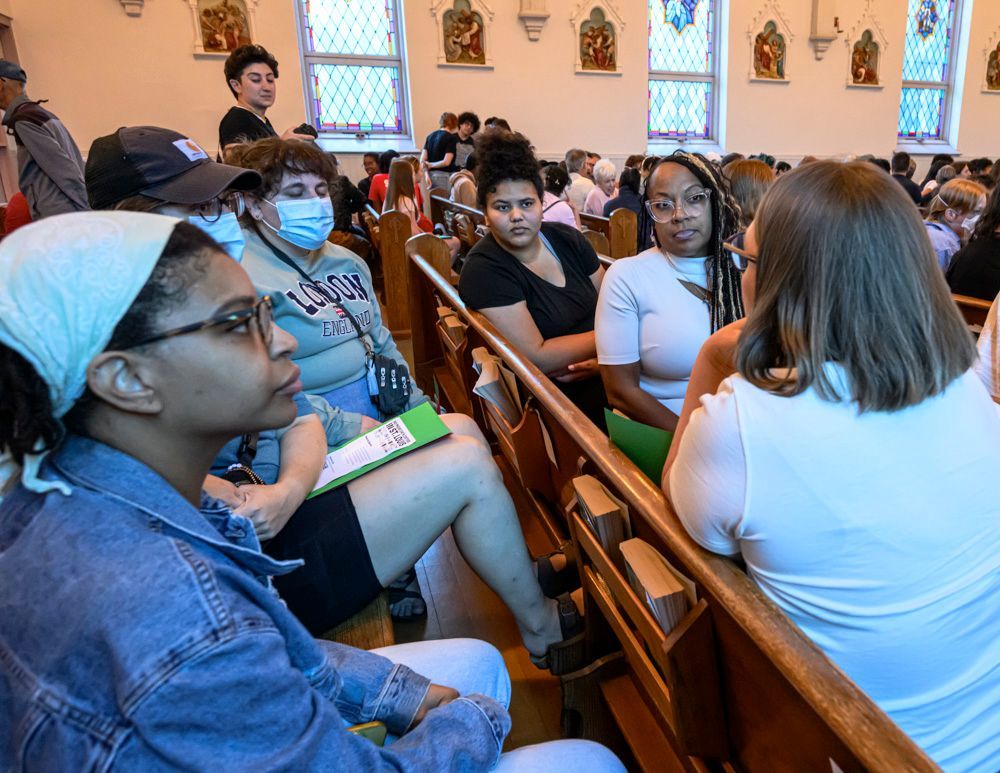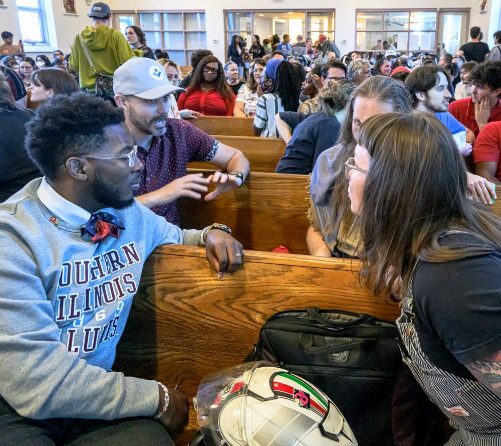Corporate interests want to build a massive data center in St. Louis against the objection of communities because of concern about higher utility bills, water usage, impact on neighborhoods, tax deferrals that would take revenue away from City schools, and many other environmental issues. A large group gathered at St. Cronin's Catholic Church to strategize and organize.