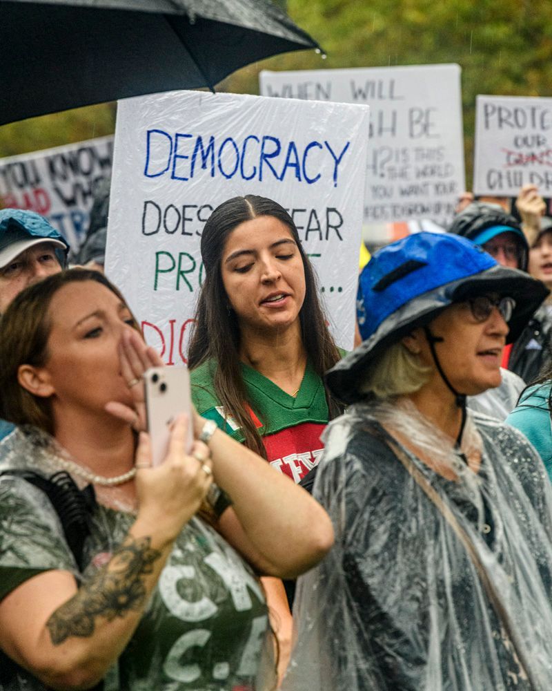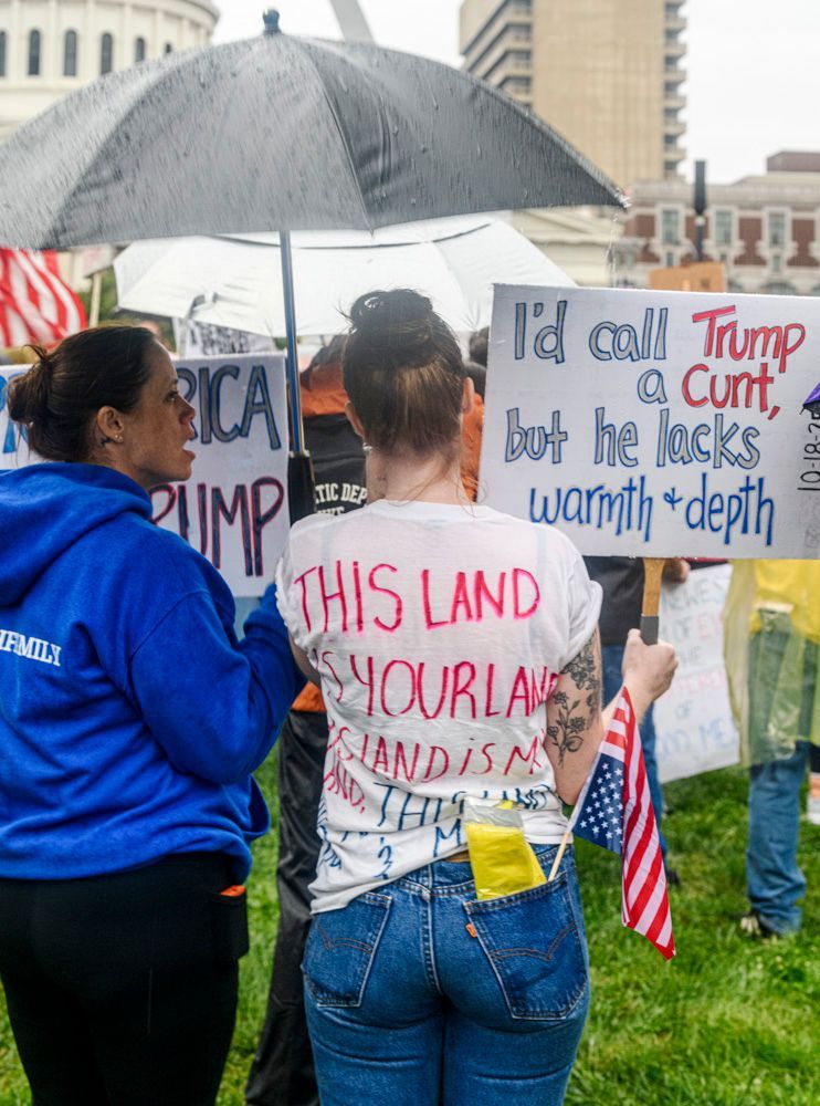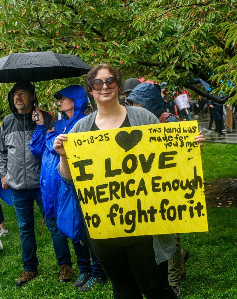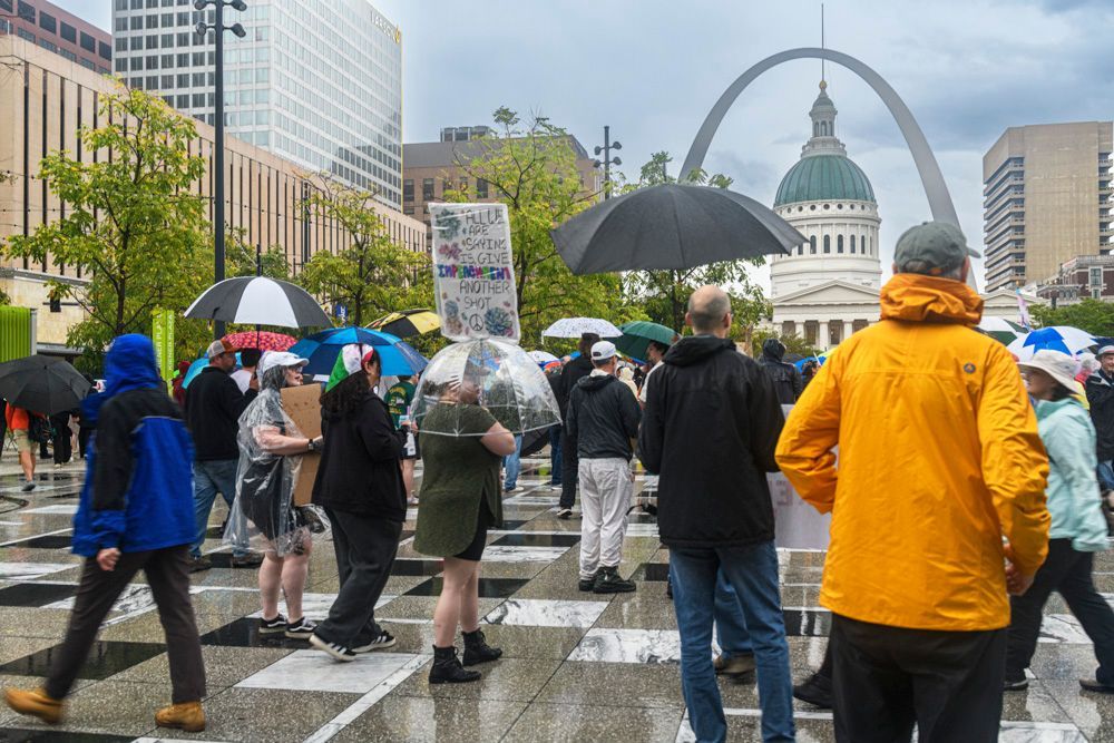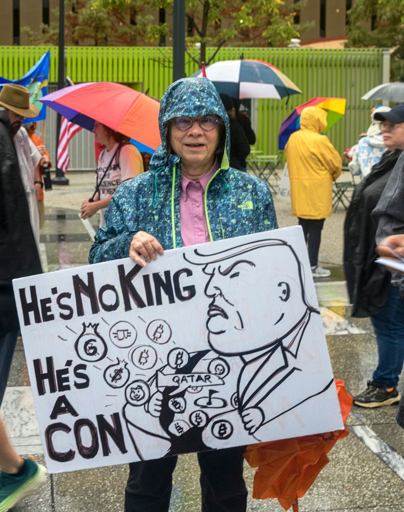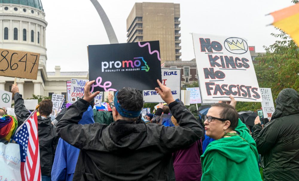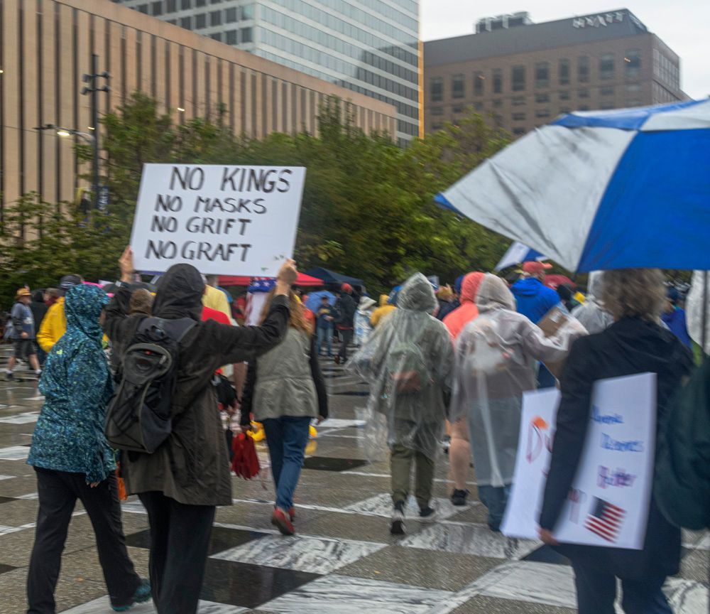 Demonstrators across the U.S. took to the streets on Saturday to protest the policies of President Trump. In downtown St. Louis a month's long drought ended with persistent down pouring rain, which did not deter a crowd larger than the previous No Kings protest on June 14. This time the crowd seemed more diverse by age, race, and background with one common denominator: protesting against the Donald J. Trump "regime", their policies and unlawful, unconstitutional behavior to date.
