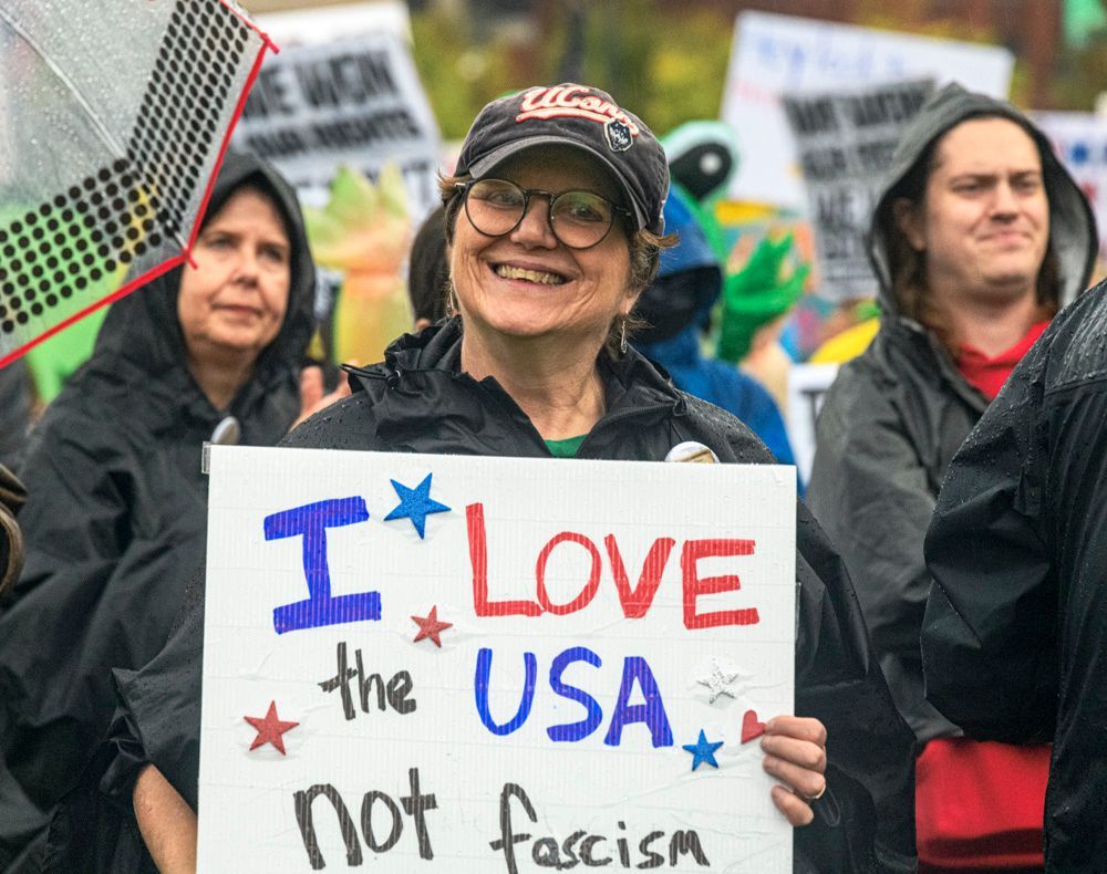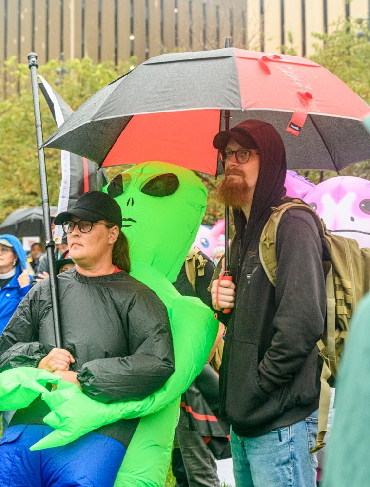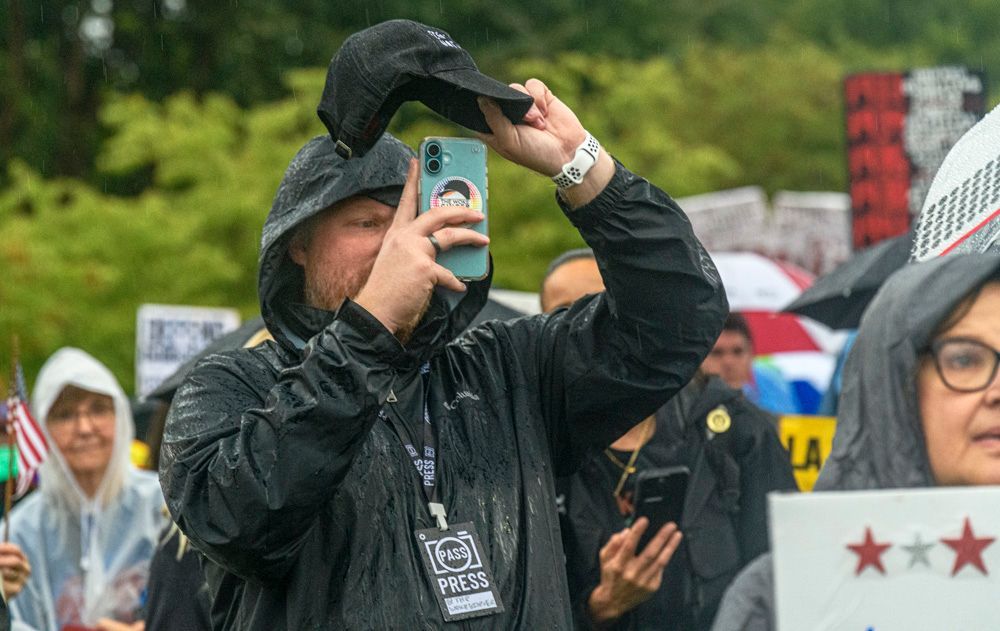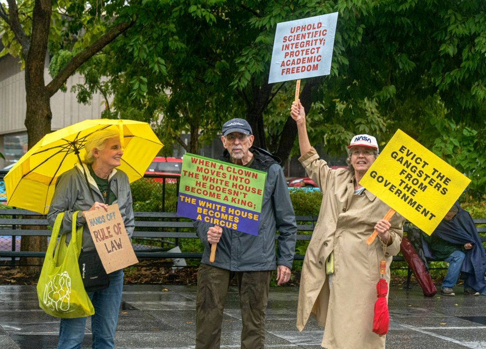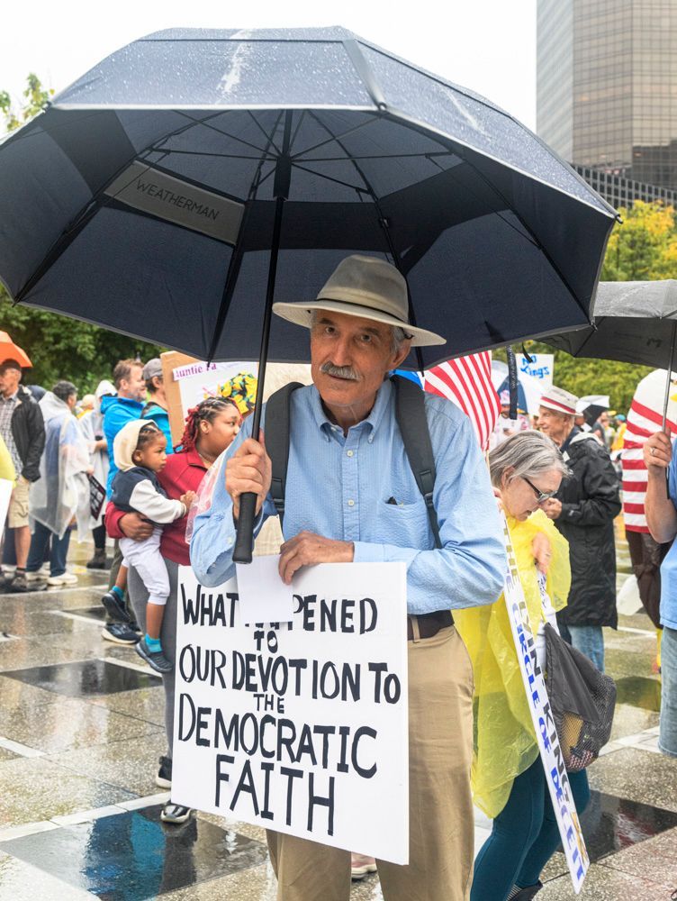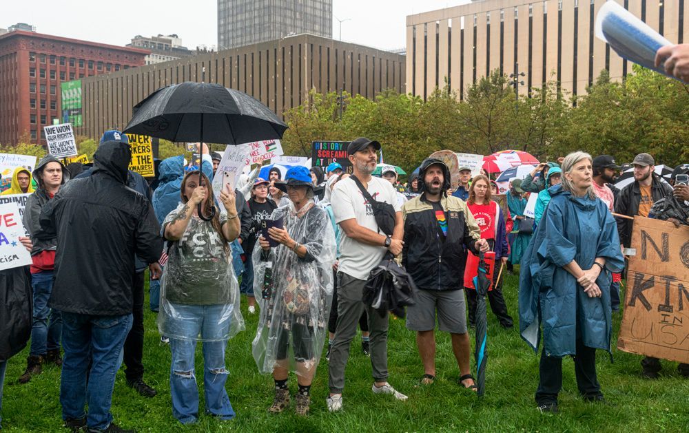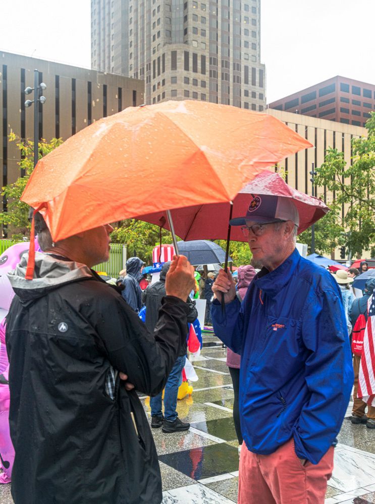 Demonstrators across the U.S. took to the streets on Saturday to protest the policies of President Trump. In downtown St. Louis a month's long drought ended with persistent down pouring rain, which did not deter a crowd larger than the previous No Kings protest on June 14. This time the crowd seemed more diverse by age, race, and background with one common denominator: protesting against the Donald J. Trump "regime", their policies and unlawful, unconstitutional behavior to date.