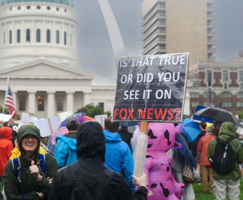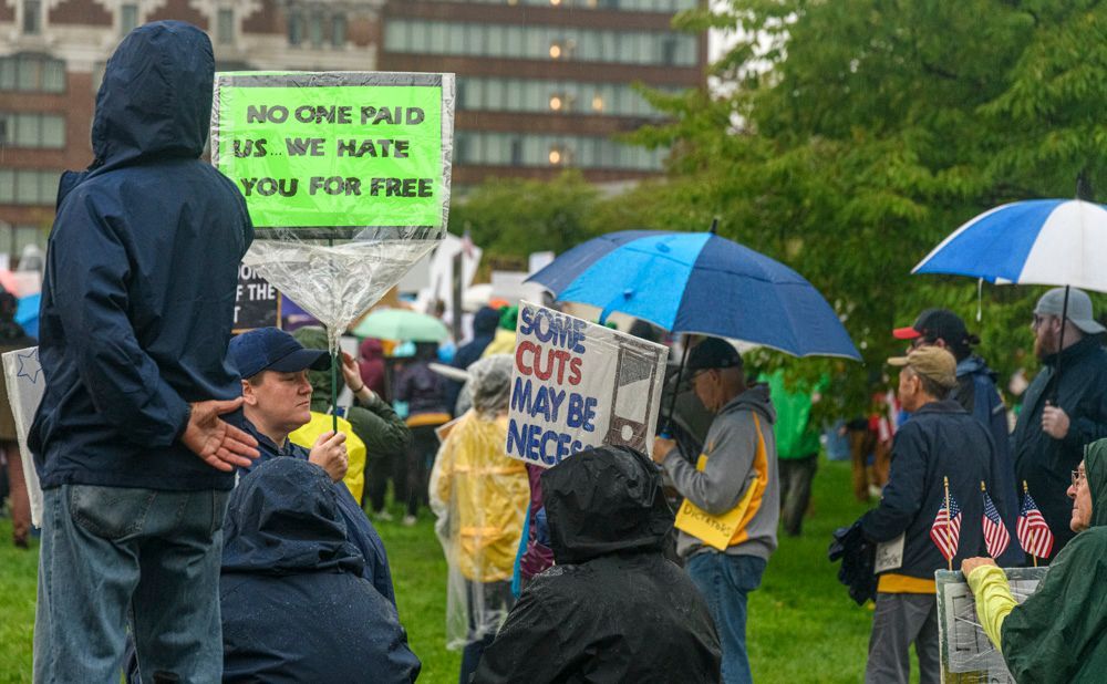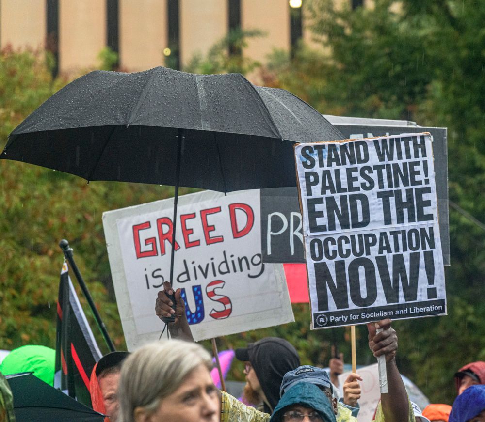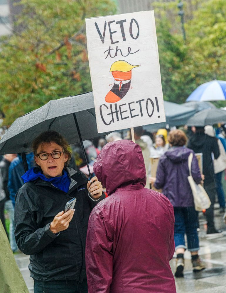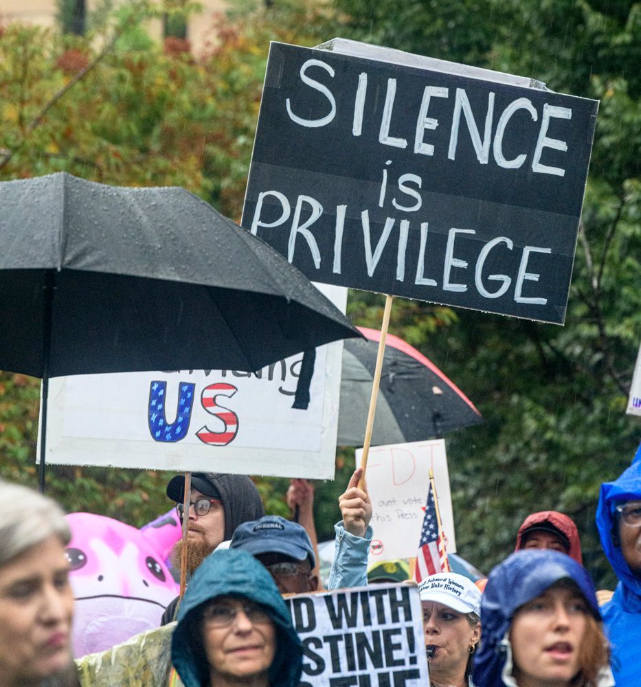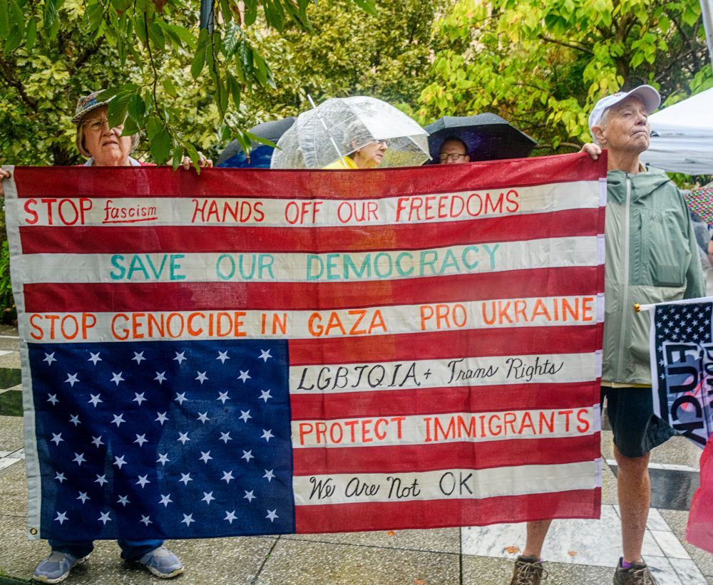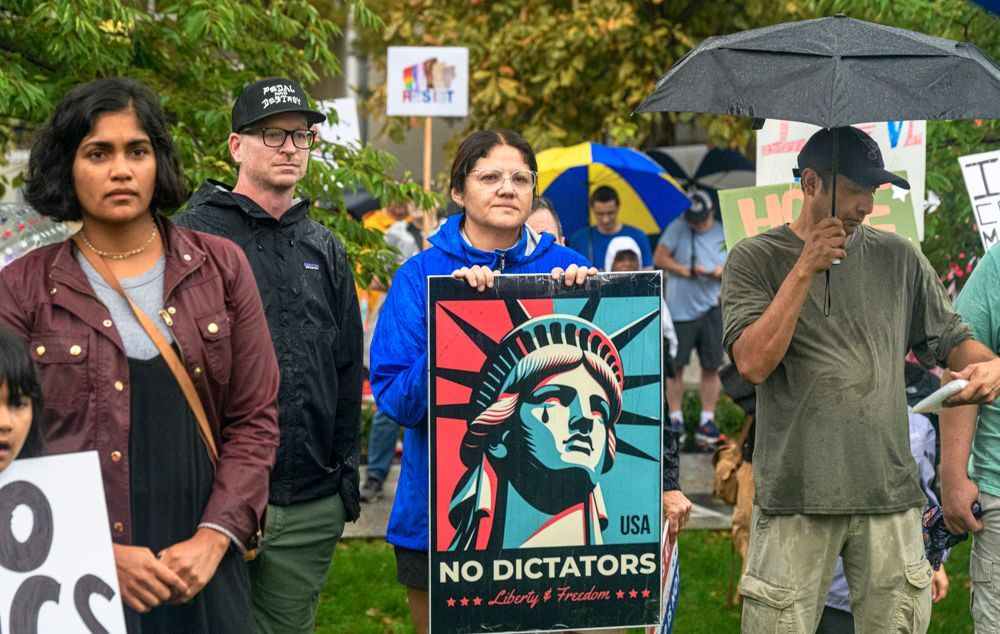 Demonstrators across the U.S. took to the streets on Saturday to protest the policies of President Trump. In downtown St. Louis a month's long drought ended with persistent down pouring rain, which did not deter a crowd larger than the previous No Kings protest on June 14. This time the crowd seemed more diverse by age, race, and background with one common denominator: protesting against the Donald J. Trump "regime", their policies and unlawful, unconstitutional behavior to date.
