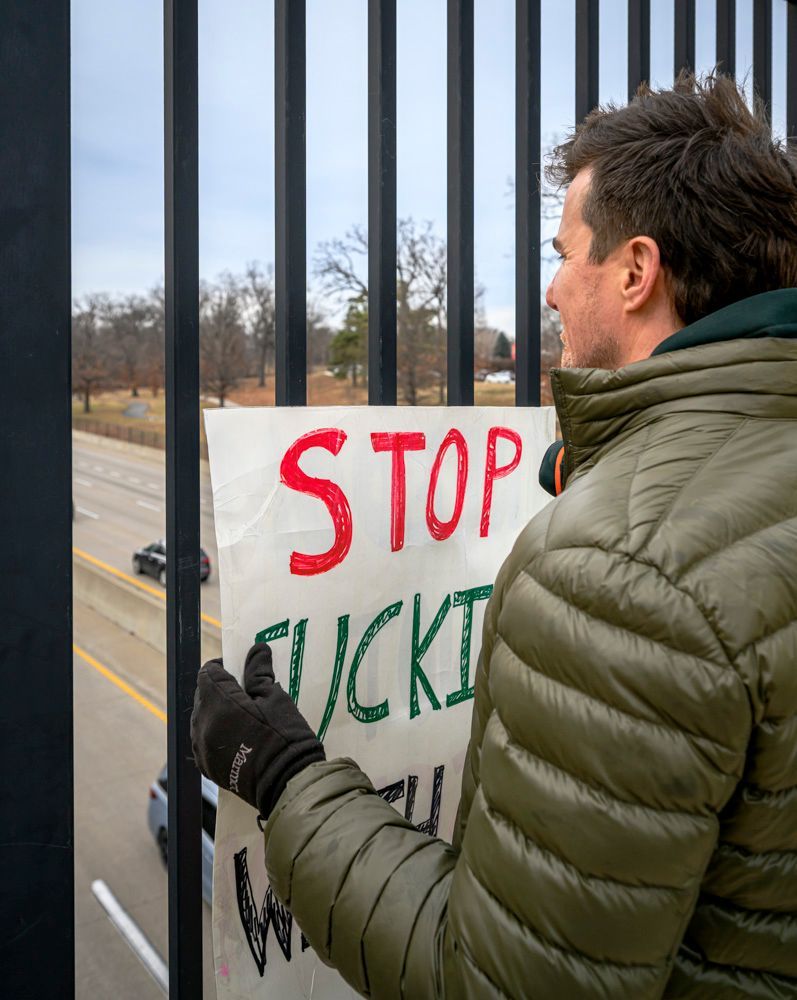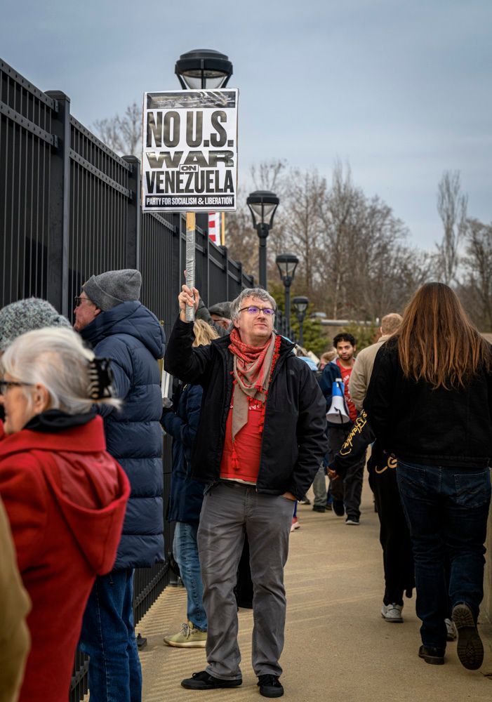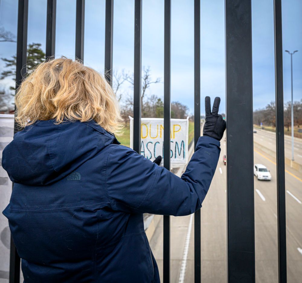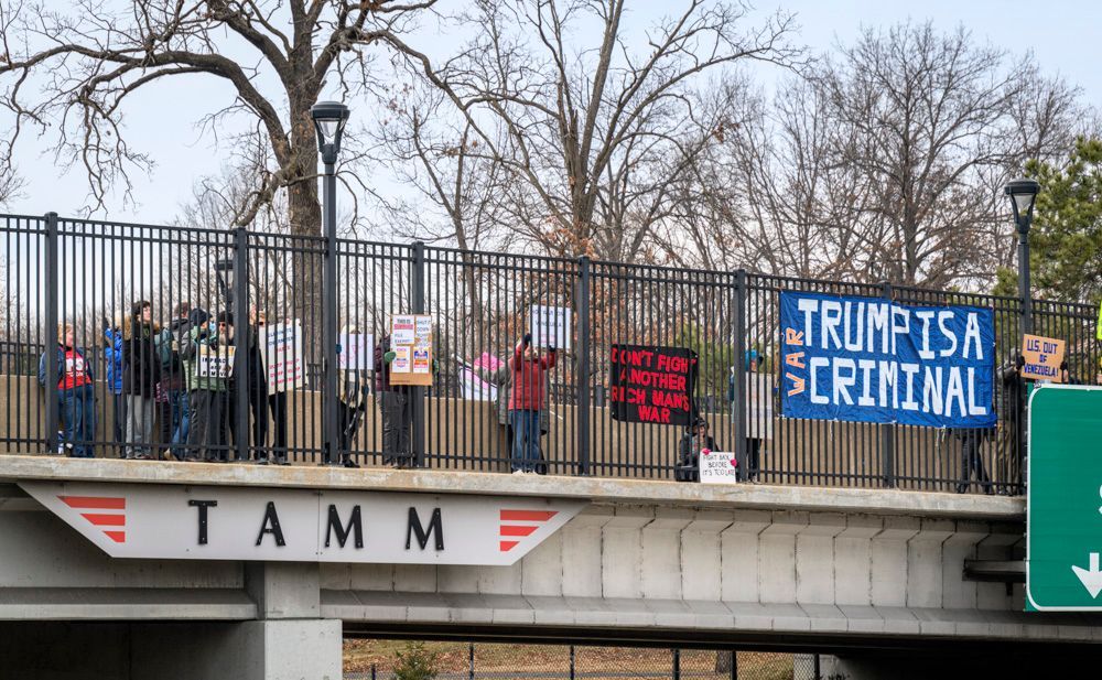 A day after Trump's illegal incursion into Venezuela and kidnapping of that country's president and his wife, St. Louisans gathered at the Tamm Avenue overpass over I-64 to show their disgust of this president's illegal actions. The attack on Venezuela violated international laws (the U.N. and others) and U.S. laws. This lawlessness has to stop.